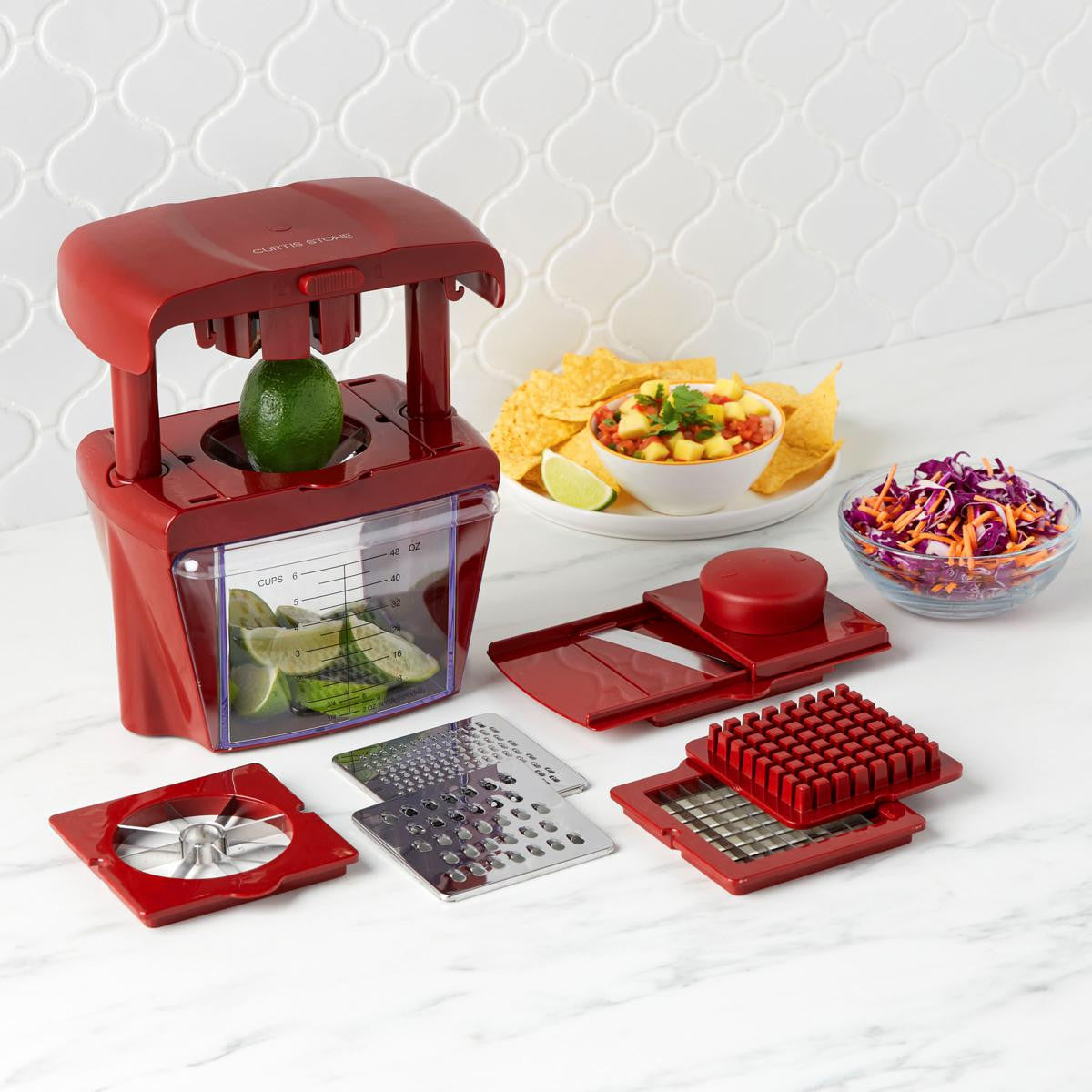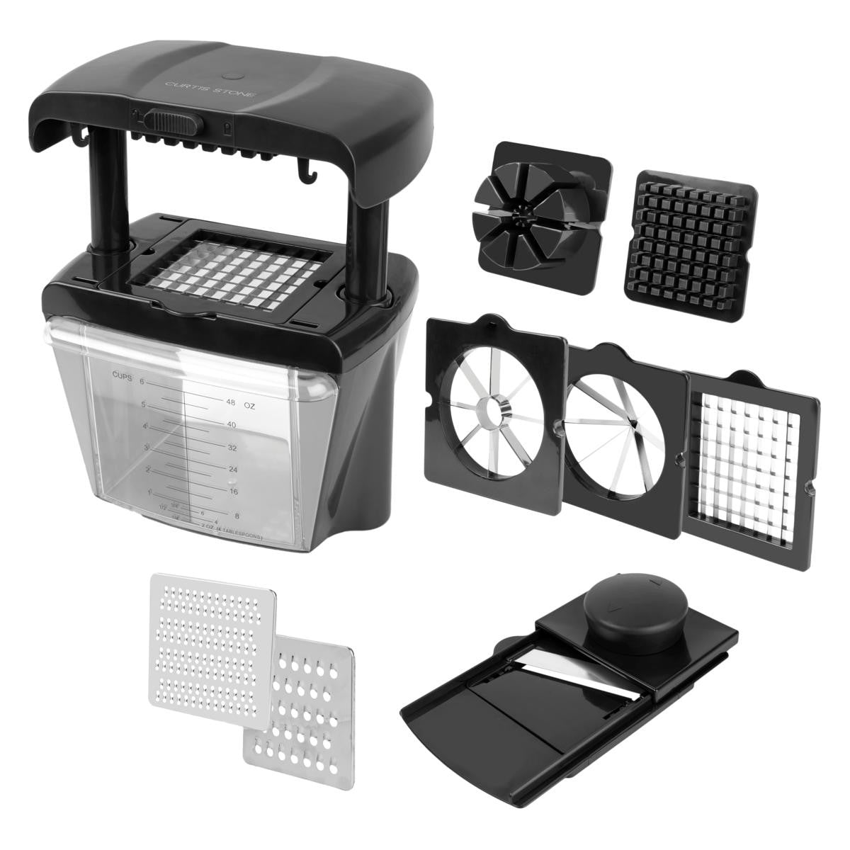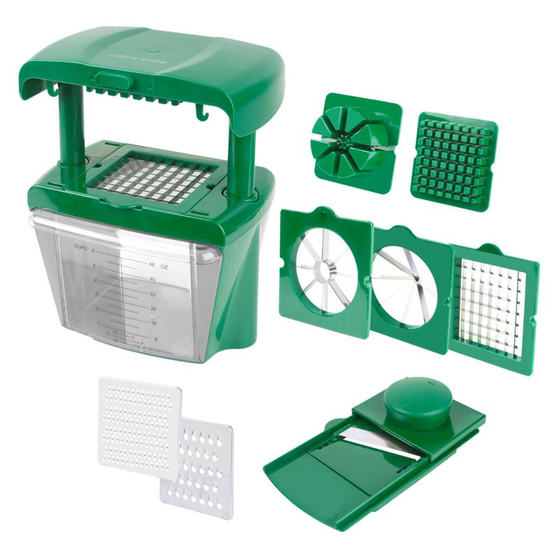 The Curtis Stone Chop Chop All-in-One Prep Tool makes prepping food fast and easy. Make anything from homestyle French fries to a quick salad in no time at all. With a wide range of blades to cut all kinds of veggies and fruits, the Chop Chop gives you an extra hand in the kitchen to prepare a great meal in less time.